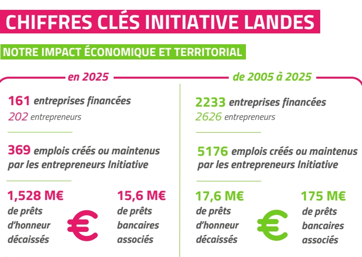 - Trois rencontres territoriales marquantes, dont le troisième événement «Pitch Initiative - proximité et valorisation des entrepreneurs Initiative » a mis en lumière l’énergie, la créativité et l’audace des porteurs de projets. Ces temps forts incarnent notre volonté de créer du lien, de valoriser les réussites locales et de faire rayonner l’entrepreneuriat landais.